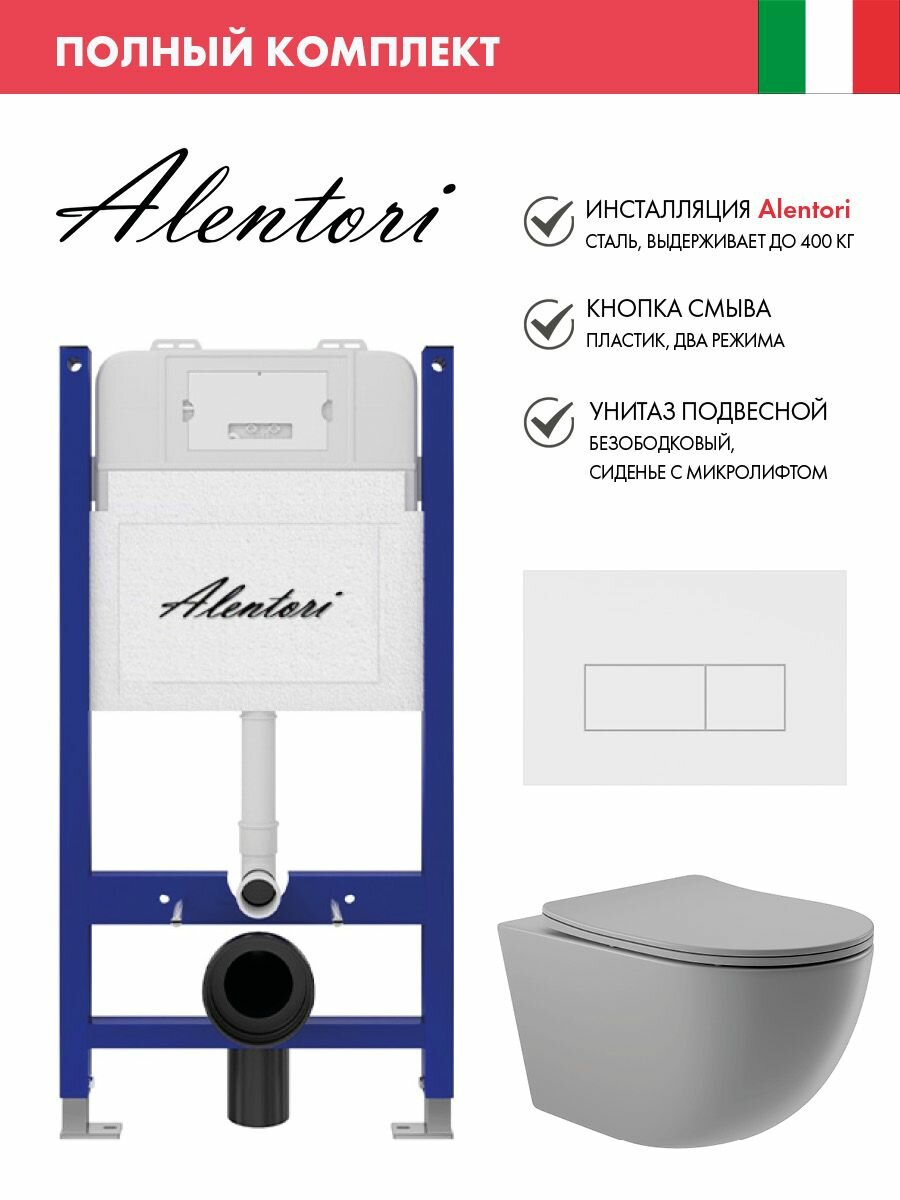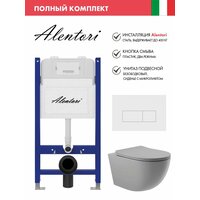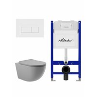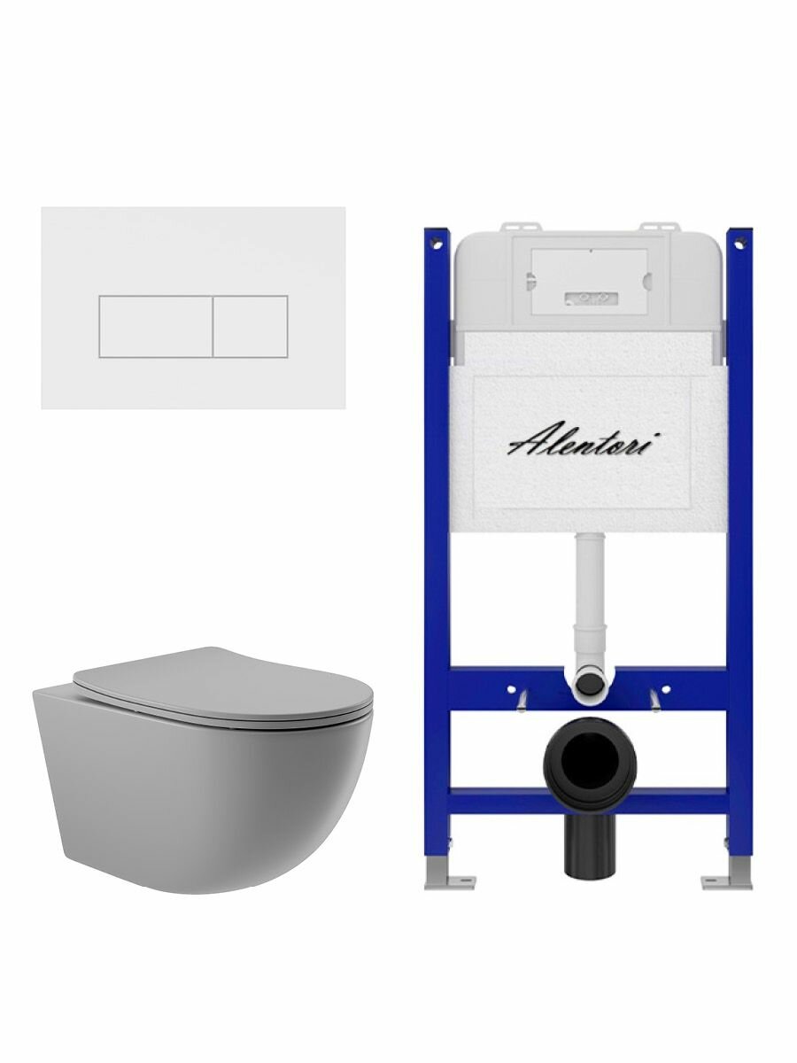 Купить Комплект Инсталляция для унитаза Alentori SISTEMA 50 AL. SIS33T с клавишей смыва Alentori CHIAVE H, белый матовый AL. CHI018WM + Унитаз 525*360 безободковый, Soft-Close, серый матовый, форма овал с доставкой по всей России.