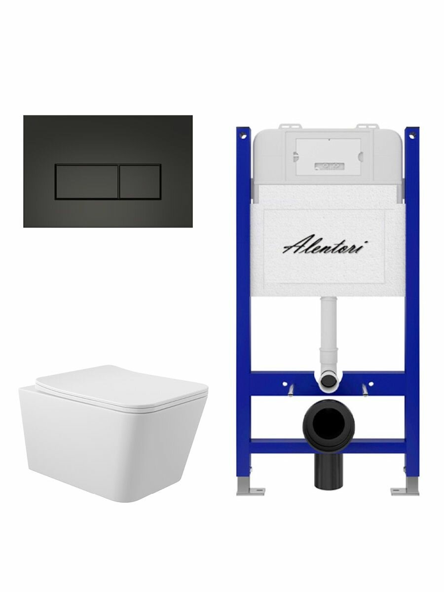 Купить Комплект Инсталляция для унитаза Alentori SISTEMA 50 AL. SIS33T с клавишей смыва Alentori CHIAVE H, черный матовый AL. CHI203BM + Унитаз 520*370 безободковый, Soft-Close, белый матовый, форма квадрат с доставкой по всей России.