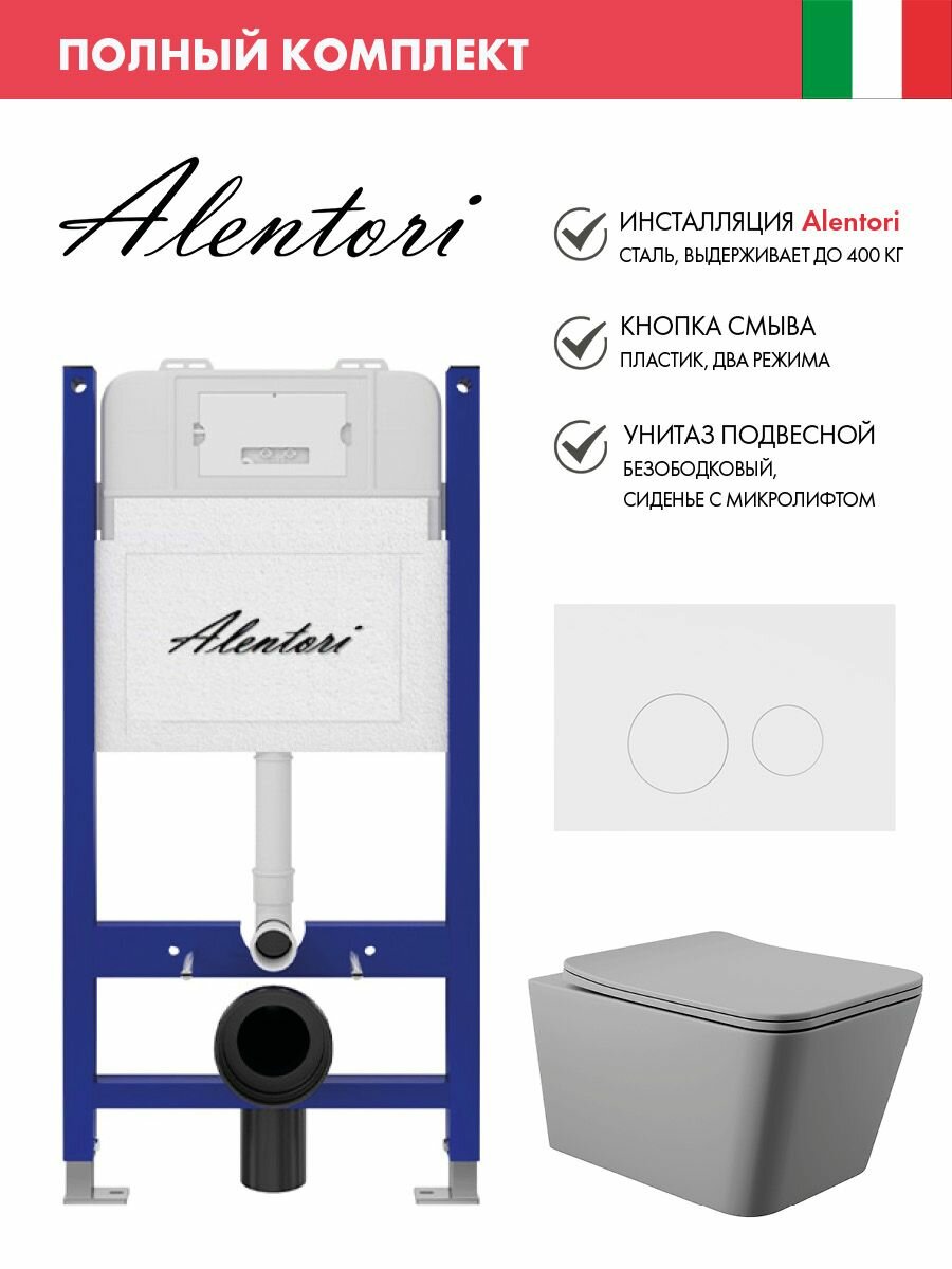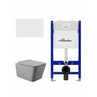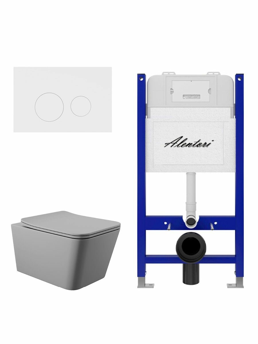 Купить Комплект Инсталляция для унитаза Alentori SISTEMA 50 AL. SIS33T с клавишей смыва Alentori CHIAVE L, белый матовый AL. CHI019WM + Унитаз 520*370 безободковый, Soft-Close, серый матовый, форма квадрат с доставкой по всей России.