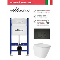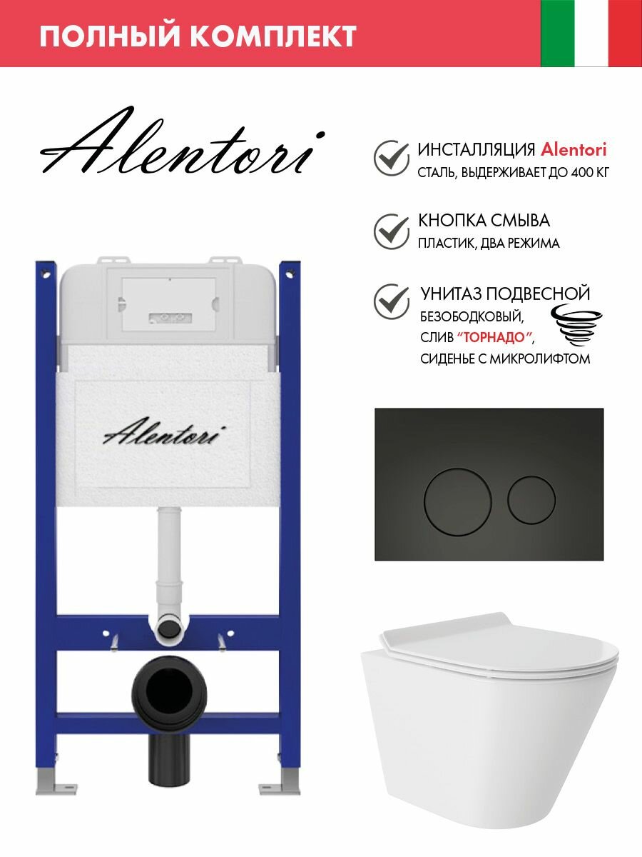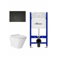 Купить Комплект Инсталляция для унитаза Alentori SISTEMA 50 AL. SIS33T с клавишей смыва Alentori CHIAVE L, черный матовый AL. CHI103BM + Унитаз 480*360 безободковый, Vortex, Soft-Close, белый глянцевый, конус с доставкой по всей России.
