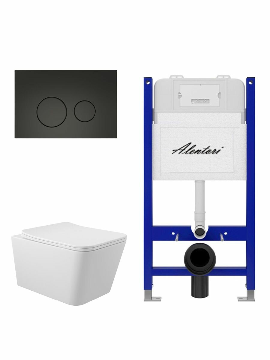 Купить Комплект Инсталляция для унитаза Alentori SISTEMA 50 AL. SIS33T с клавишей смыва Alentori CHIAVE L, черный матовый AL. CHI103BM + Унитаз 520*370 безободковый, Soft-Close, белый матовый, форма квадрат с доставкой по всей России.