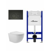 Купить Комплект Инсталляция для унитаза Alentori SISTEMA 50 AL. SIS33T с клавишей смыва Alentori CHIAVE L, черный матовый AL. CHI103BM + Унитаз 525*360 безободковый, Soft-Close, белый матовый, форма овал с доставкой по всей России.