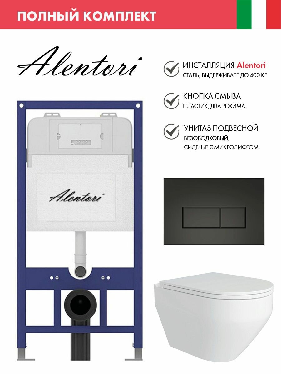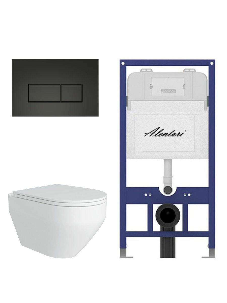 Купить Комплект Инсталляция для унитаза Alentori SISTEMA 52 AL. SIS11T с клавишей Alentori CHIAVE H, черный матовый AL. CHI203BM + Alentori FLUIRE 208 Унитаз безободковый, с микролифтом, белый глян. с доставкой по всей России.