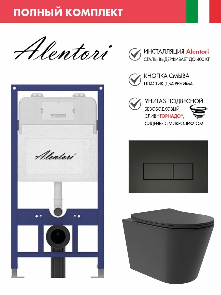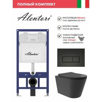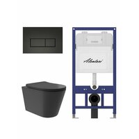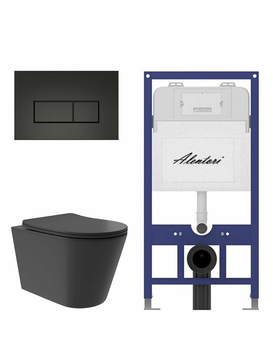 Купить Комплект Инсталляция для унитаза Alentori SISTEMA 52 AL. SIS11T с клавишей Alentori CHIAVE H, черный матовый AL. CHI203BM + Унитаз Long 520*365 безободковый, Vortex, Soft-Close, черный матовый, конус с доставкой по всей России.