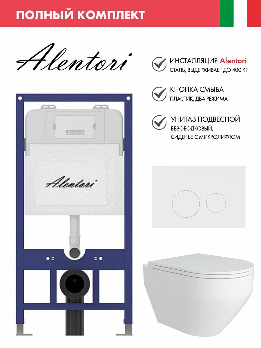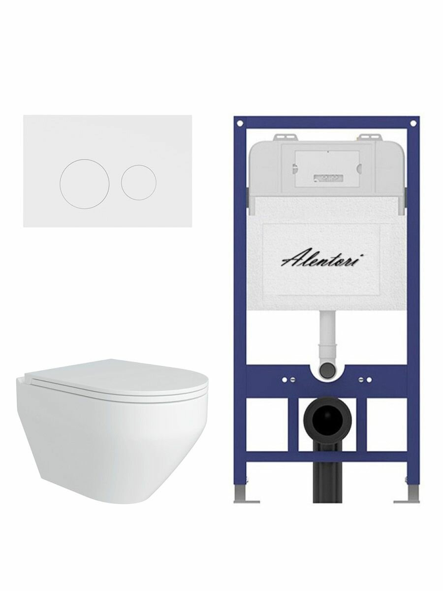 Купить Комплект Инсталляция для унитаза Alentori SISTEMA 52 AL. SIS11T с клавишей Alentori CHIAVE L, белый матовый AL. CHI019WM + Alentori FLUIRE 208 Унитаз безободковый, с микролифтом, белый глян. с доставкой по всей России.