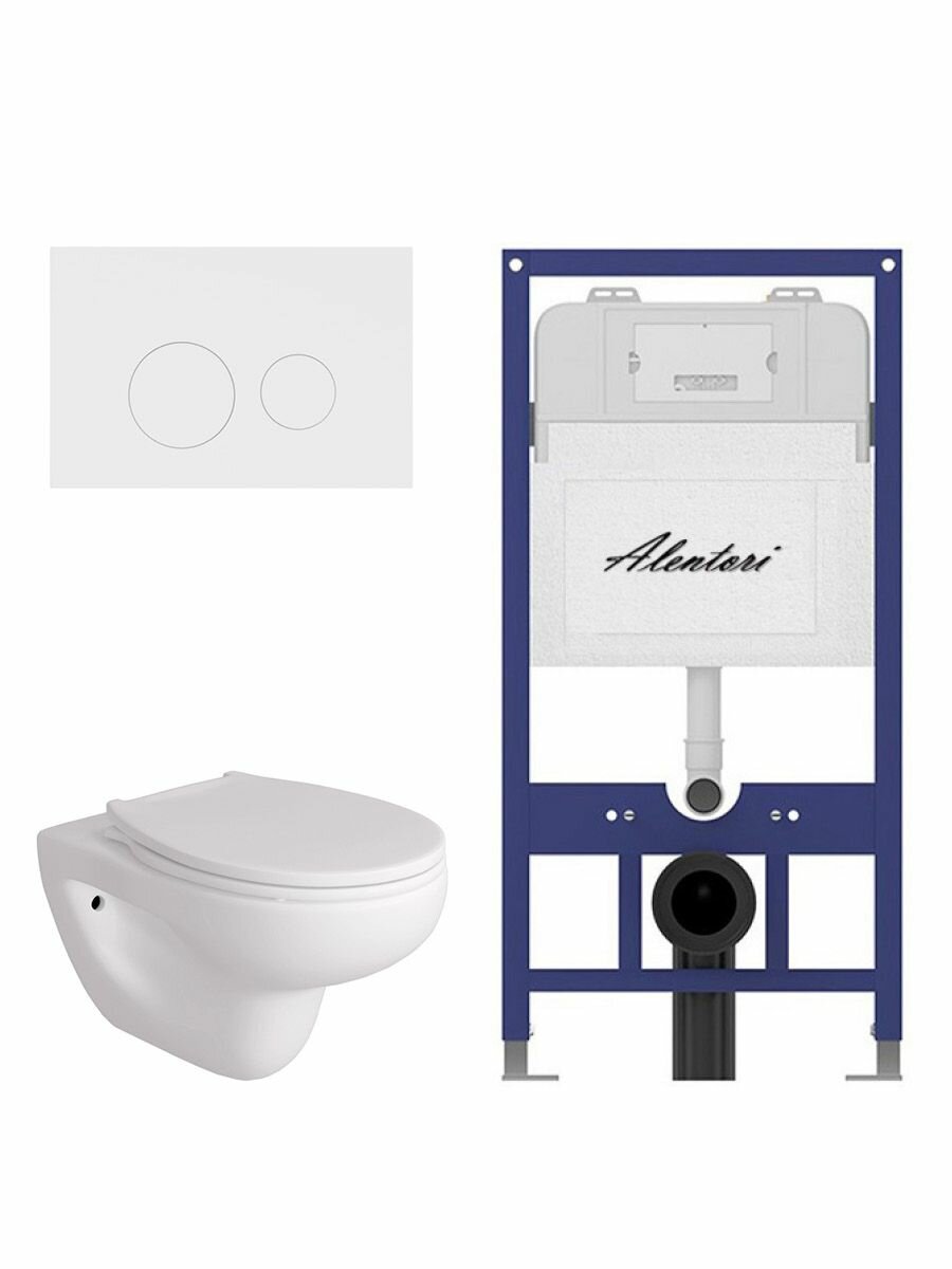 Комплект Инсталляция для унитаза Alentori SISTEMA 52 AL. SIS11T с клавишей Alentori CHIAVE L, белый матовый AL. CHI019WM + Alentori FLUIRE 901 Унитаз безободковый, с микролифтом, белый глян.: сравнение цен, характеристики, фото, актуальное наличие и цены.
