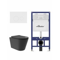 Купить Комплект Инсталляция для унитаза Alentori SISTEMA 52 AL. SIS11T с клавишей Alentori CHIAVE L, белый матовый AL. CHI019WM + Унитаз Long 520*365 безободковый, Vortex, Soft-Close, черный матовый, конус с доставкой по всей России.