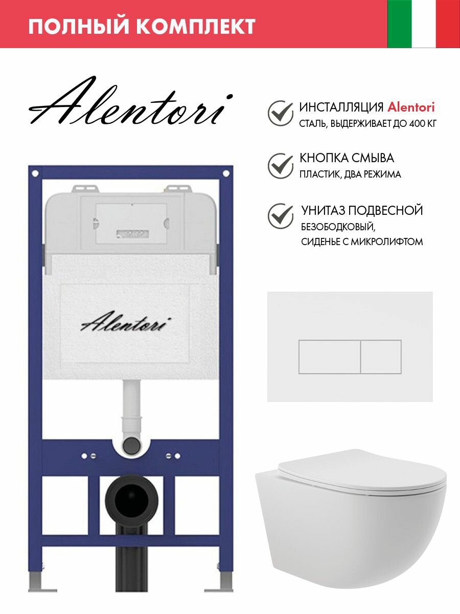 Купить Комплект Инсталляция для унитаза Alentori SISTEMA 52 AL. SIS11T с клавишей смыва Alentori CHIAVE H, белый матовый AL. CHI018WM + Унитаз 525*360 безободковый, Soft-Close, белый матовый, форма овал с доставкой по всей России.