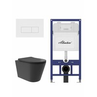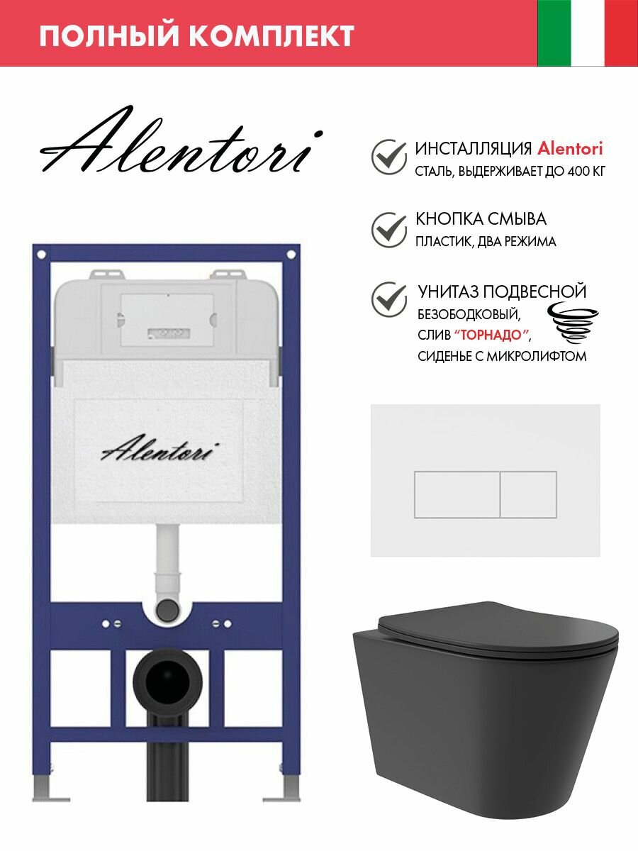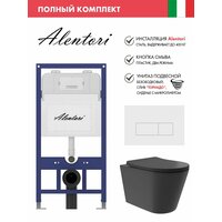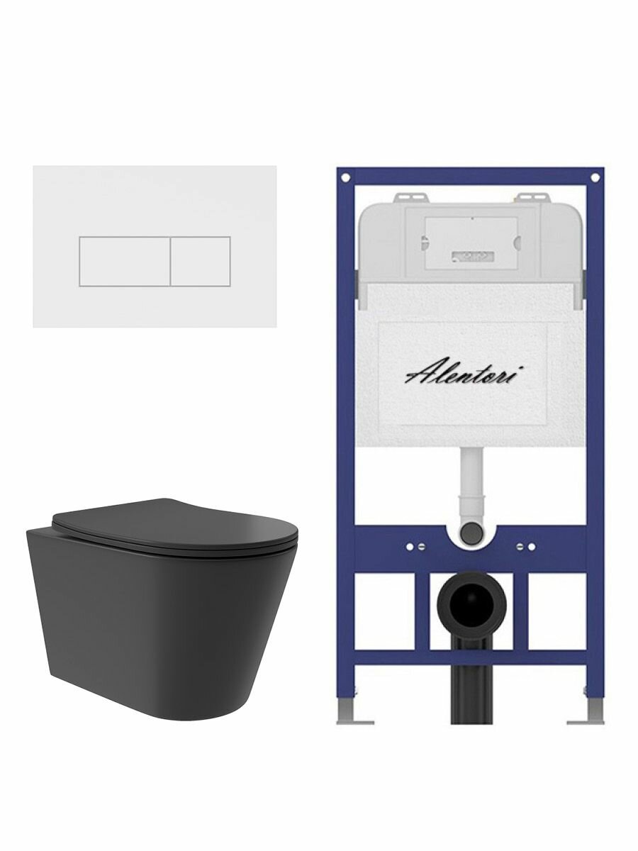 Купить Комплект Инсталляция для унитаза Alentori SISTEMA 52 AL. SIS11T с клавишей смыва Alentori CHIAVE H, белый матовый AL. CHI018WM + Унитаз Long 520*365 безободковый, Vortex, черный матовый, форма конус с доставкой по всей России.
