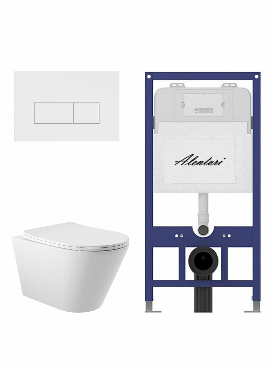 Купить Комплект Инсталляция для унитаза Alentori SISTEMA 52 AL. SIS11T с клавишей смыва Alentori CHIAVE H, белый матовый AL. CHI018WM + Унитаз подвесной 525*360 безободковый, белый матовый, форма конус с доставкой по всей России.
