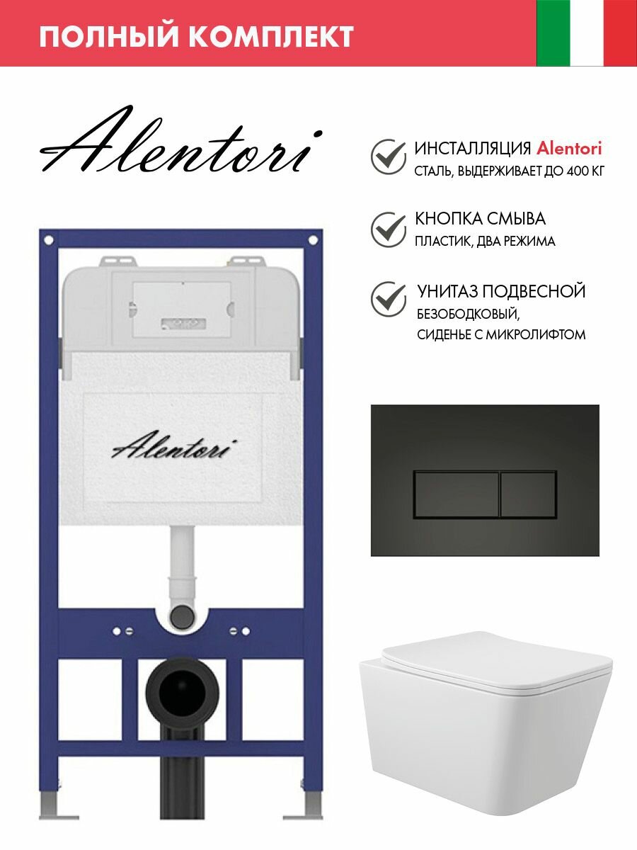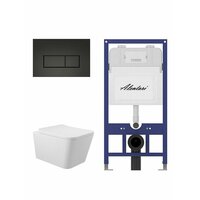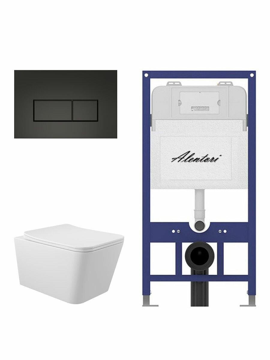 Купить Комплект Инсталляция для унитаза Alentori SISTEMA 52 AL. SIS11T с клавишей смыва Alentori CHIAVE H, черный матовый AL. CHI203BM + Унитаз 520*370 безободковый, Soft-Close, белый глянцевый, форма квадрат с доставкой по всей России.