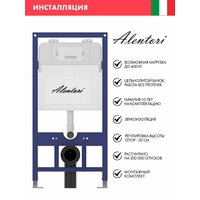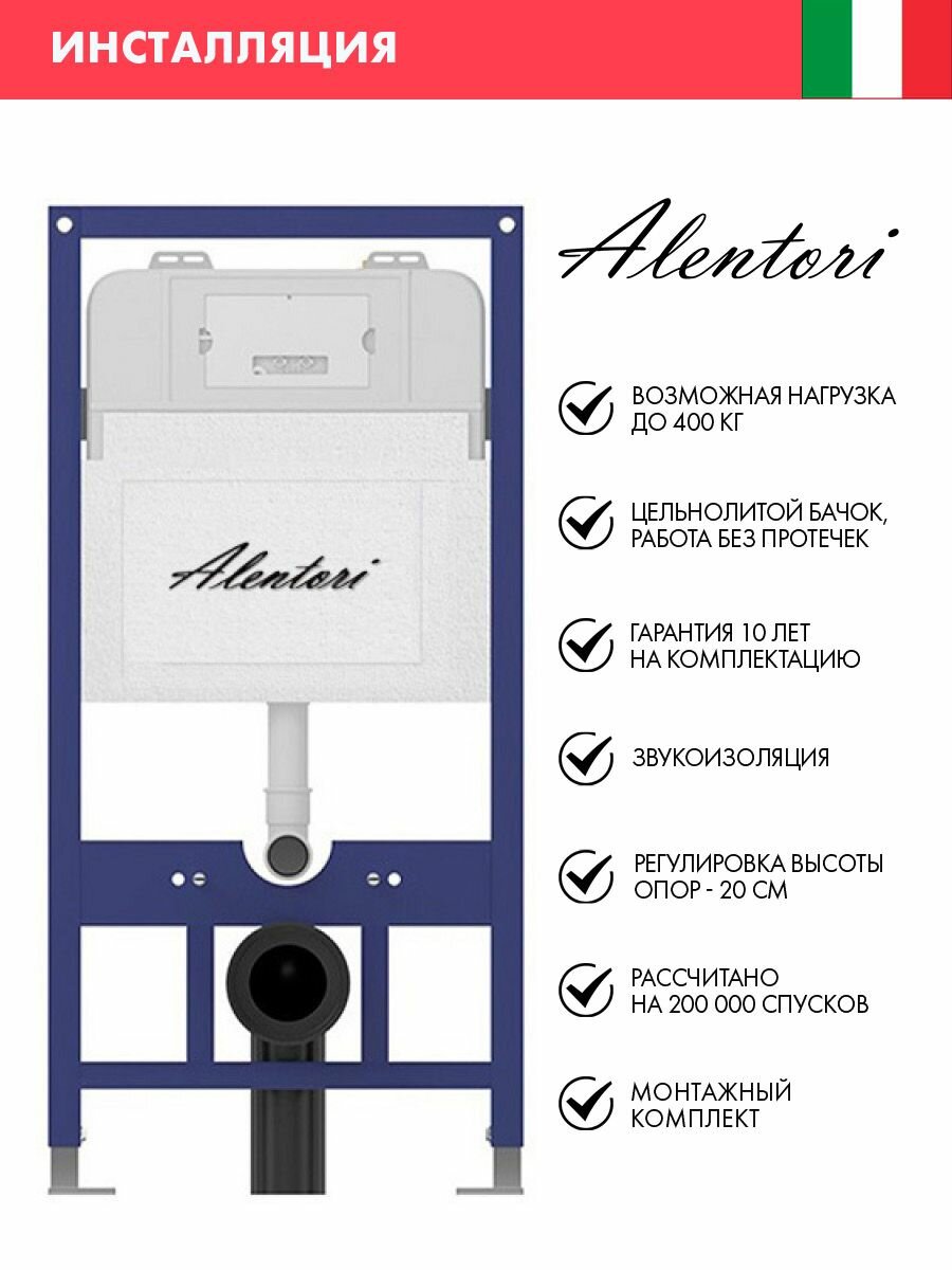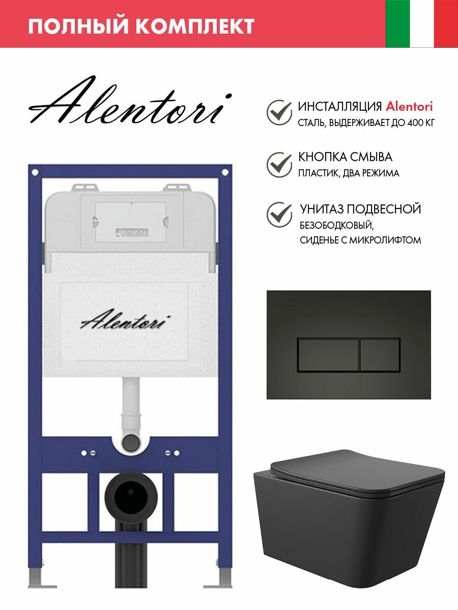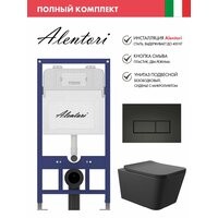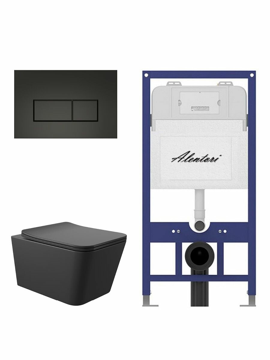 Купить Комплект Инсталляция для унитаза Alentori SISTEMA 52 AL. SIS11T с клавишей смыва Alentori CHIAVE H, черный матовый AL. CHI203BM + Унитаз 520*370 безободковый, Soft-Close, черный матовый, форма квадрат с доставкой по всей России.
