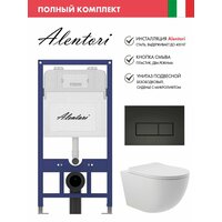Купить Комплект Инсталляция для унитаза Alentori SISTEMA 52 AL. SIS11T с клавишей смыва Alentori CHIAVE H, черный матовый AL. CHI203BM + Унитаз 525*360 безободковый, Soft-Close, белый матовый, форма овал с доставкой по всей России.