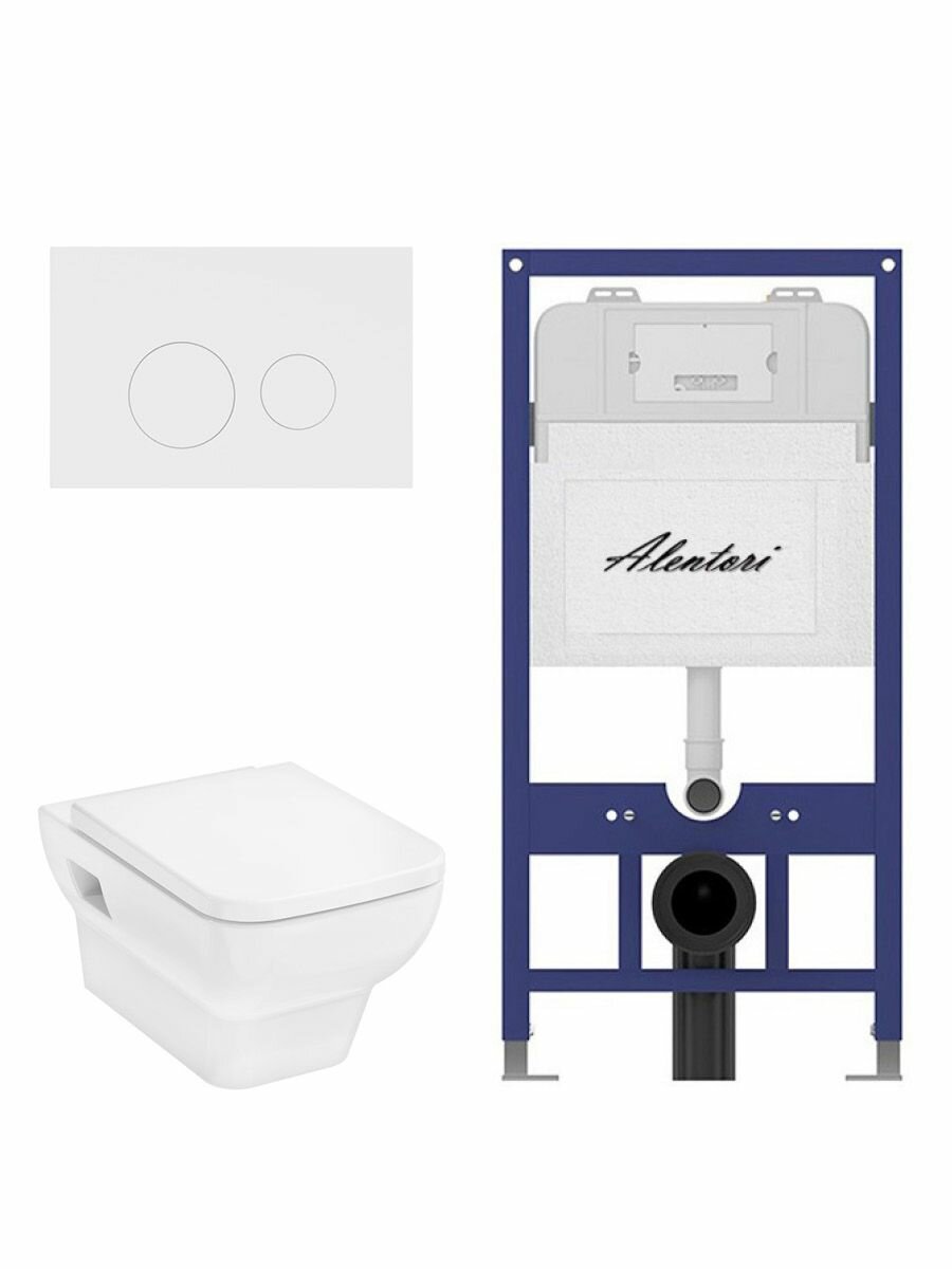Купить Комплект Инсталляция для унитаза Alentori SISTEMA 52 AL. SIS11T с клавишей смыва Alentori CHIAVE L, белый матовый AL. CHI019WM + Hansgrohe CreekTide Q Унитаз 540×360, с микролифтом, безободковый, белый с доставкой по всей России.