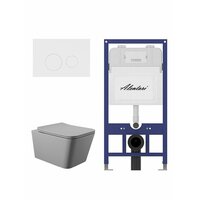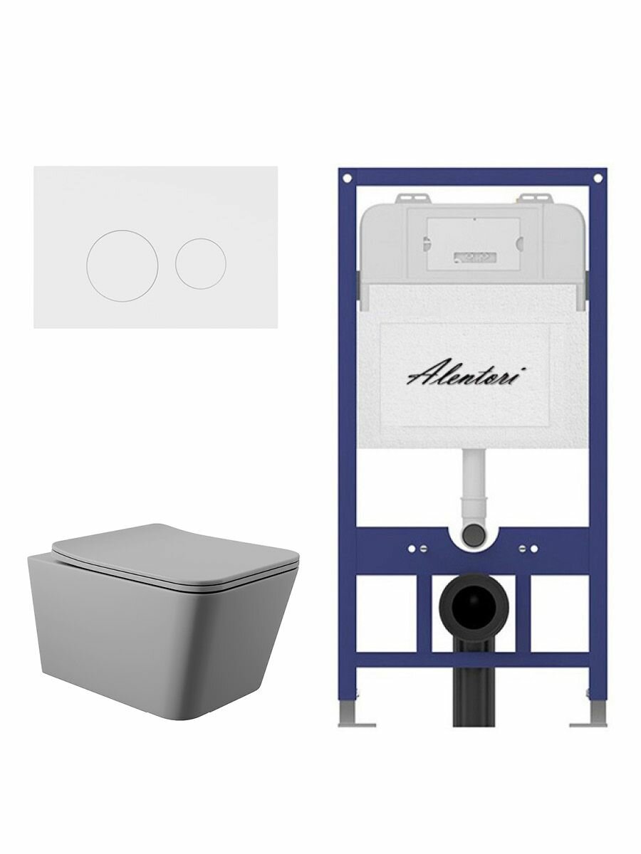 Купить Комплект Инсталляция для унитаза Alentori SISTEMA 52 AL. SIS11T с клавишей смыва Alentori CHIAVE L, белый матовый AL. CHI019WM + Унитаз 520*370 безободковый, Soft-Close, серый матовый, форма квадрат с доставкой по всей России.