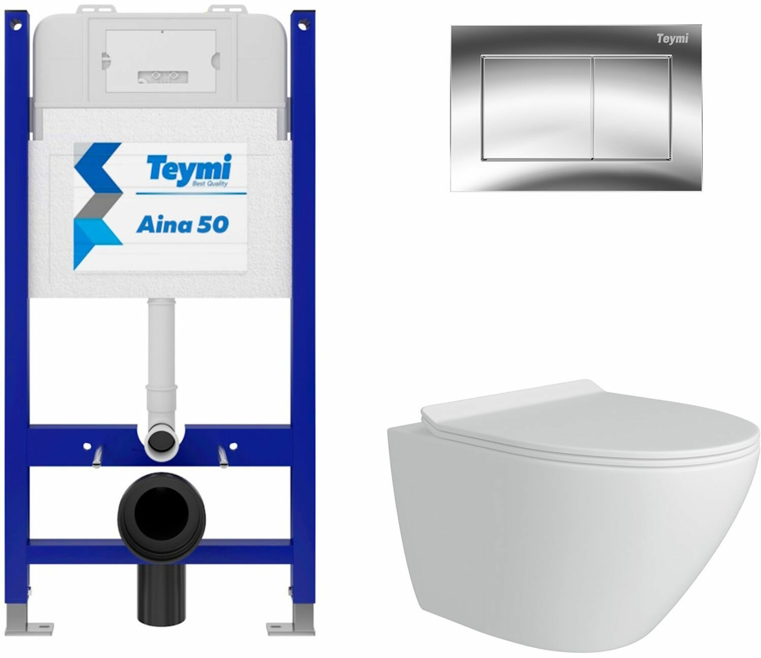 Комплект Инсталляция для унитаза Teymi Aina 50, арт. T70033 с клавишей смыва Teymi Aina, хром глянец T70012CH + Alentori FLUIRE Унитаз безободковый, с микролифтом, белый глян.: сравнение цен, характеристики, фото, актуальное наличие и цены.