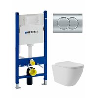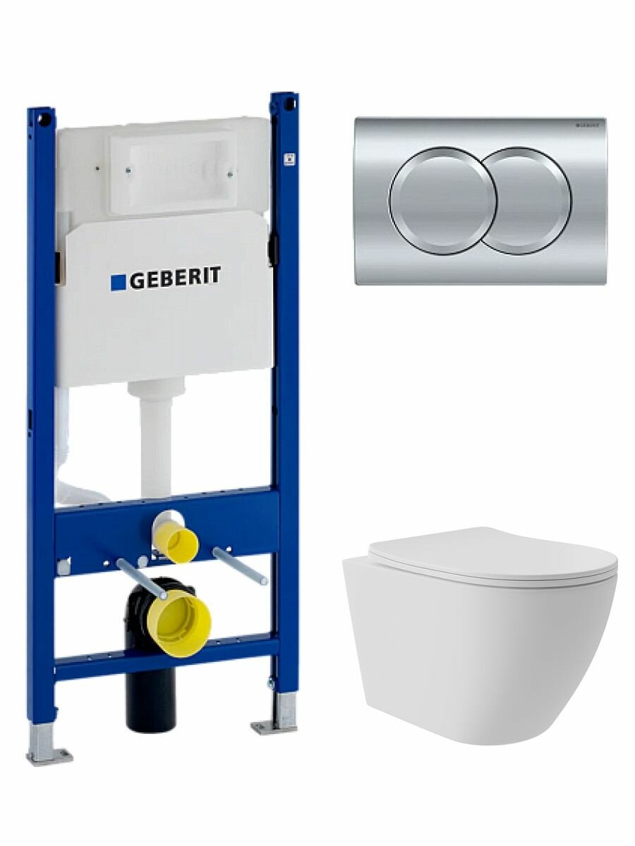 Купить Комплект Инсталляция Geberit Duofix, бачок Delta 12 см, клавиша Delta01, Хром 458.149.21.1 + Унитаз подвесной 520*365 безободковый Long, Vortex, сиденье Soft-Close, белый матовый, форма овал с доставкой по всей России.