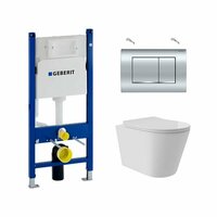 Комплект Инсталляция Geberit Duofix, бачок Delta 12 см, клавиша Delta30, Хром 458.163.21.1 + Унитаз подвесной 520*365 безободковый Long, Vortex, сиденье Soft-Close, белый глянцевый, форма конус: сравнение цен, характеристики, фото, актуальное наличие и цены.