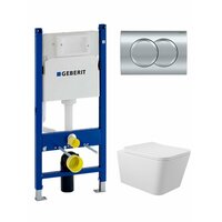 Комплект Инсталляция Geberit Duofix с панелью смыва Delta01, Хром 458.149.21.1+Унитаз подвесной, безободковый, сиденье Soft-Close, белый глянцевый, форма квадрат: сравнение цен, характеристики, фото, актуальное наличие и цены.