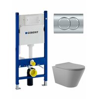Комплект Инсталляция Geberit Duofix с панелью смыва Delta01, Хром 458.149.21.1+Унитаз подвесной, безободковый, сиденье Soft-Close, серый матовый, форма конус: сравнение цен, характеристики, фото, актуальное наличие и цены.