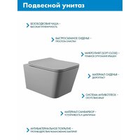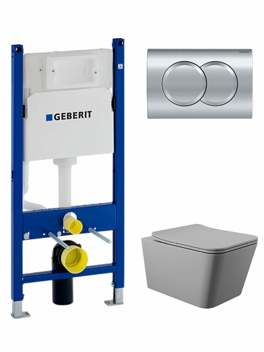 Купить Комплект Инсталляция Geberit Duofix с панелью смыва Delta01, Хром 458.149.21.1+Унитаз подвесной, безободковый, сиденье Soft-Close, серый матовый, форма квадрат с доставкой по всей России.