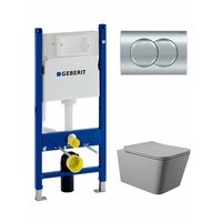 Комплект Инсталляция Geberit Duofix с панелью смыва Delta01, Хром 458.149.21.1+Унитаз подвесной, безободковый, сиденье Soft-Close, серый матовый, форма квадрат: сравнение цен, характеристики, фото, актуальное наличие и цены.