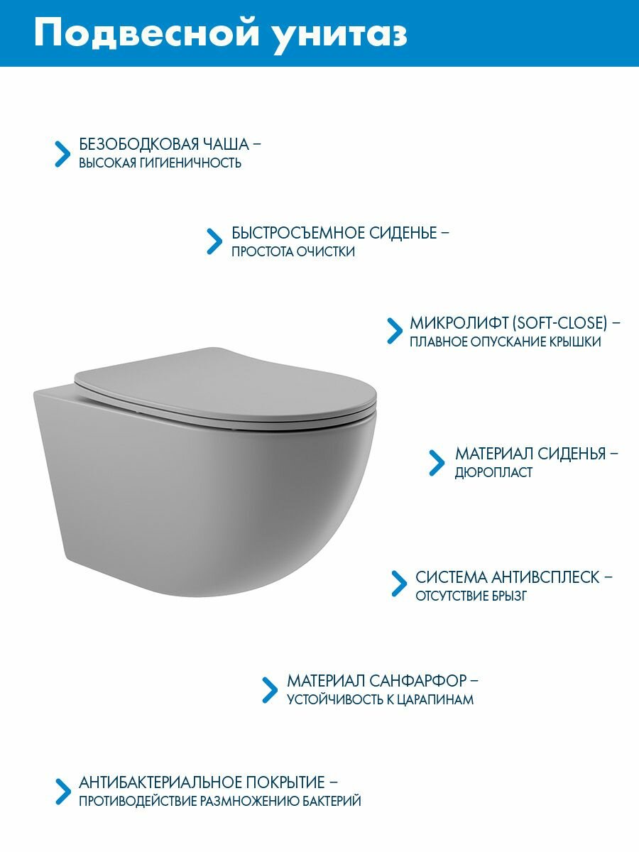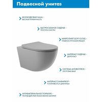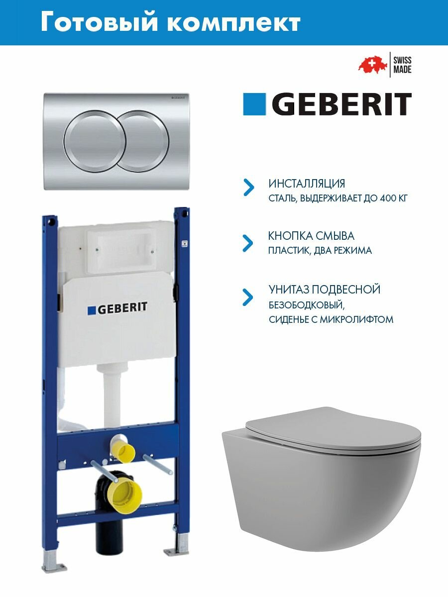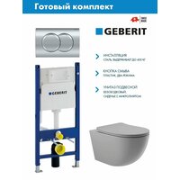 Купить Комплект Инсталляция Geberit Duofix с панелью смыва Delta01, Хром 458.149.21.1+Унитаз подвесной, безободковый, сиденье Soft-Close, серый матовый, форма овал с доставкой по всей России.