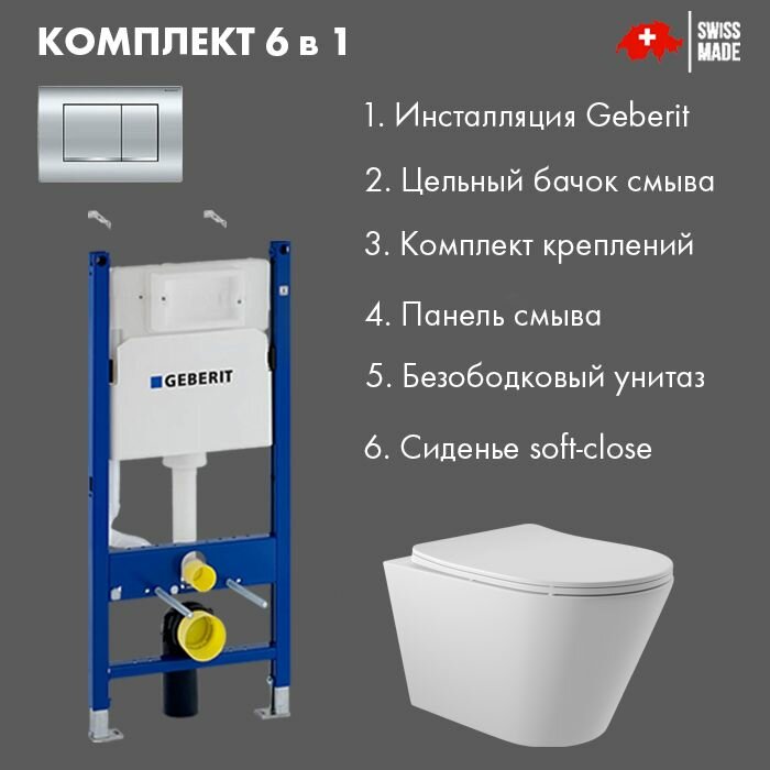 Купить Комплект Инсталляция Geberit Duofix с панелью смыва Delta30, Хром 458.149.21.1 + Унитаз подвесной, безободковый ADT, Vortex, сиденье Soft-Close, белый матовый, форма конус с доставкой по всей России.