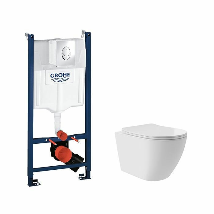 Комплект Инсталляция GROHE Rapid SL с панелью смыва, 3 режима, матовый хром + Унитаз подвесной 520*365 безободковый Long, Vortex, сиденье Soft-Close, белый глянцевый, форма овал: сравнение цен, характеристики, фото, актуальное наличие и цены.