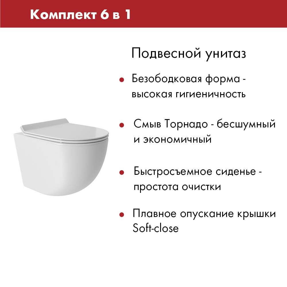 | Комплектация | бачок, инсталляция, монтажный набор креплений, панель смыва, сиденье |