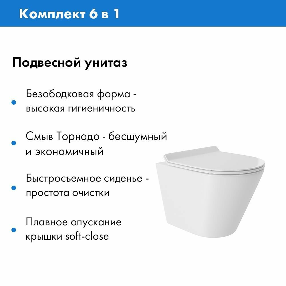 Купить Комплект Инсталляция Teymi Aina 52 T70033, клавиша Helmi, черный матовый T70203BM + Унитаз подвесной 480*360 безободковый, Vortex, сиденье Soft-Close, белый глянцевый, форма конус с доставкой по всей России.