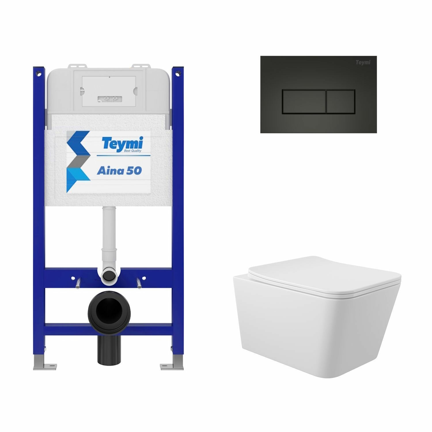 Комплект Инсталляция Teymi Aina 52 T70033, клавиша Helmi, черный матовый T70203BM + Унитаз подвесной 520*370 безободковый, сиденье Soft-Close, белый глянцевый, форма квадрат: сравнение цен, характеристики, фото, актуальное наличие и цены.