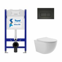 Комплект Инсталляция Teymi Aina 52 T70033, клавиша Helmi, черный матовый T70203BM + Унитаз подвесной 525*360 безободковый, сиденье Soft-Close, белый глянцевый, форма овал: сравнение цен, характеристики, фото, актуальное наличие и цены.