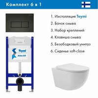 Купить Комплект Инсталляция Teymi Aina 52 T70033, клавиша Helmi, черный матовый T70203BM + Унитаз подвесной 525*360 безободковый, сиденье Soft-Close, белый глянцевый, форма овал с доставкой по всей России.