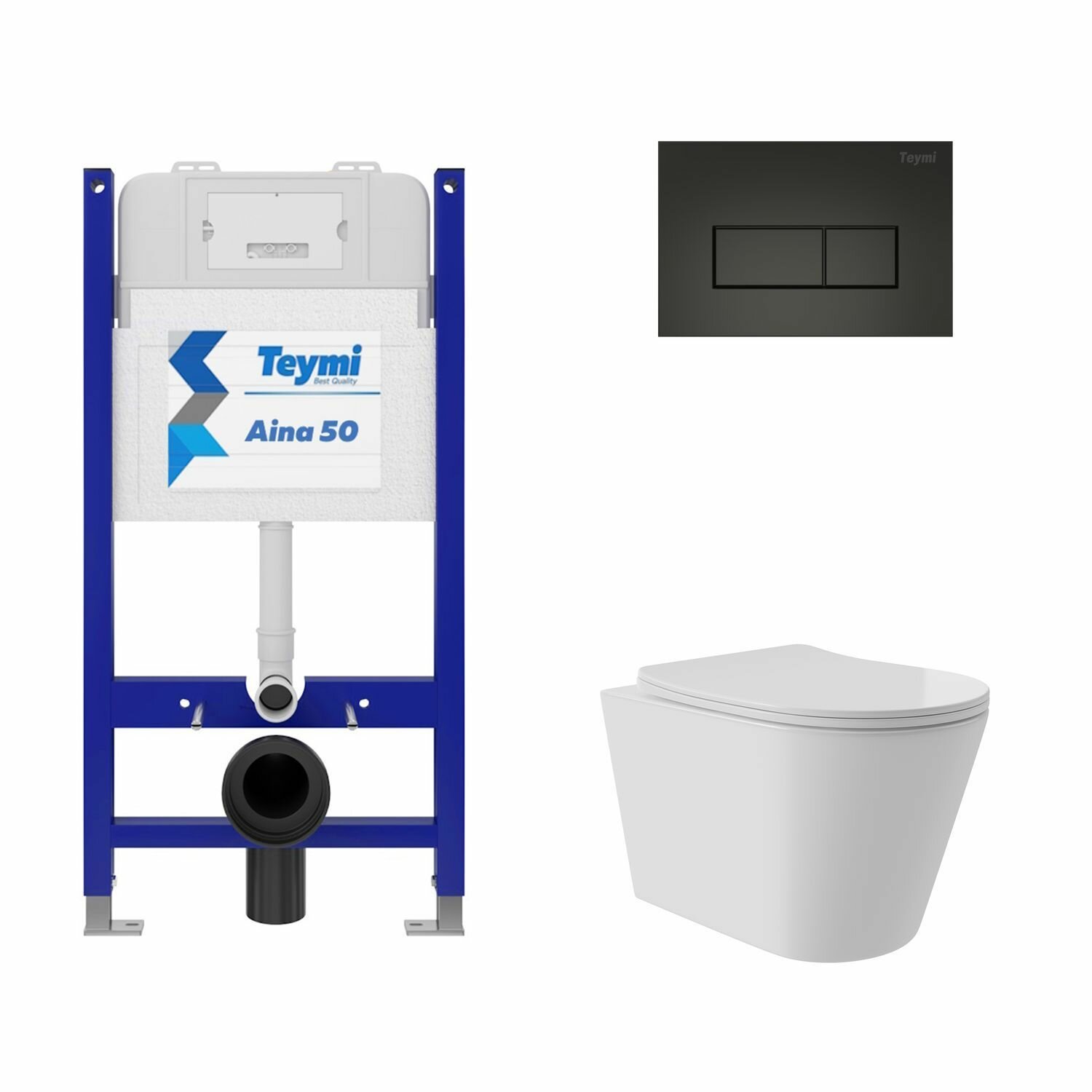 Купить Комплект Инсталляция Teymi Aina 52 T70033, клавиша Helmi, черный матовый T70203BM + Унитаз подвесной Long 520*365 безободковый, Vortex, сиденье Soft-Close, белый глянцевый, форма конус с доставкой по всей России.