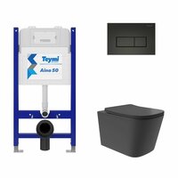Комплект Инсталляция Teymi Aina 52 T70033, клавиша Helmi, черный матовый T70203BM + Унитаз подвесной Long 525*345 безободковый, Vortex, сиденье Soft-Close, черный матовый, форма квадрат: сравнение цен, характеристики, фото, актуальное наличие и цены.