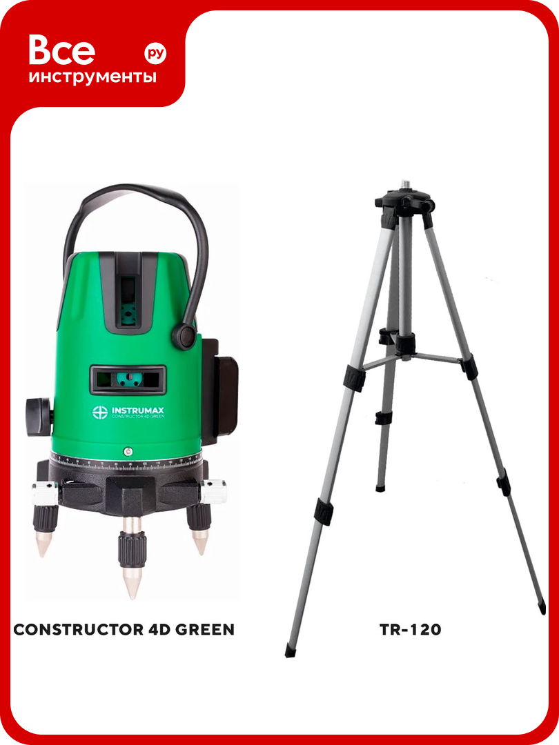 Комплект INSTRUMAX: лазерный уровень Constructor 4D GREEN + штатив телескопический с резьбой 1/4 (5/8) дюйма TR-120 IM0140_K: сравнение цен, характеристики, фото, актуальное наличие и цены.