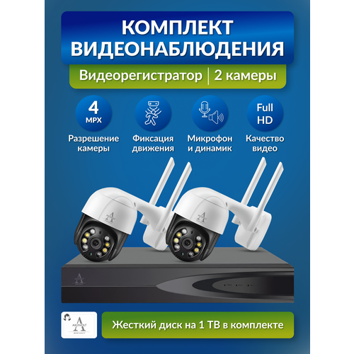 4MP IP беспроводной комплект видеонаблюдения на 2 PTZ Wi-Fi камеры, позволяющей осуществлять поворот каждой камеры на 355 гр. по горизонтали и 90 гр. по вертикали с двухсторонней аудио связью.