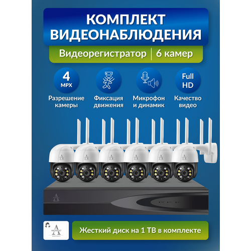 4MP IP беспроводной комплект видеонаблюдения на 6 PTZ Wi-Fi камеры, позволяющей осуществлять поворот каждой камеры на 355 гр. по горизонтали и 90 гр. по вертикали с двухсторонней аудио связью.