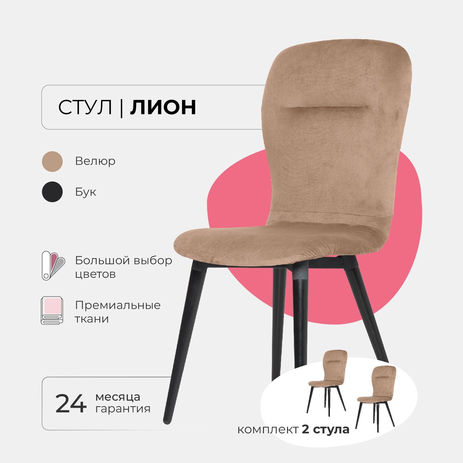 Комплект из 2-х стульев для кухни гостиной дома дачи кафе ресторанов Лион. Велюр светло-коричневый, массив дерева — бук/черный лак: сравнение цен, характеристики, фото, актуальное наличие и цены.
