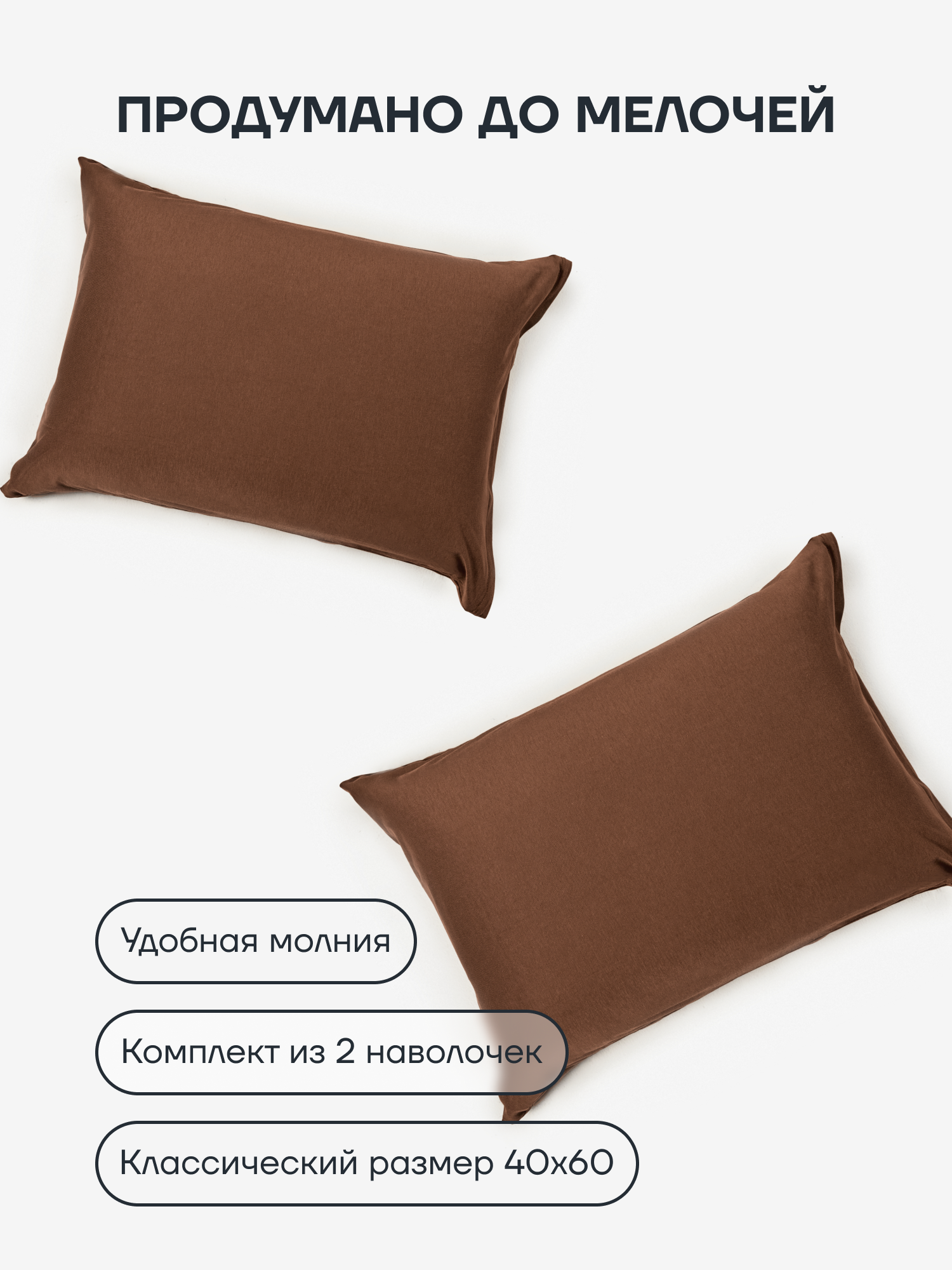 Комплект наволочек из тенселя Darwin премиум 40х60, цвет Мокко, 2 шт