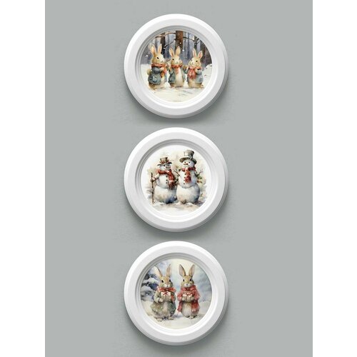 Купить Комплект из 3х мини-картин в деревянной раме «Новогоднее настроение», диаметр 17.5 см с доставкой по всей России.