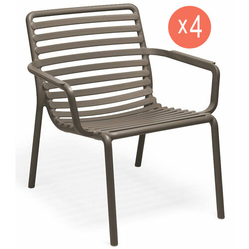 Свежая, легкая и эргономичная, Doga - это новая очаровательная коллекция уличной мебели: Кресла с подлокотниками и без них, кресло для отдыха и моноблочный журнальный столик из стеклопластика (полипропилен и стекловолокно).