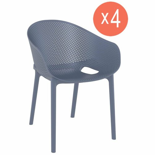 Комплект из 4-х садовых обеденных кресел Siesta Sky Pro, усиленный пластик, цвет темно-серый