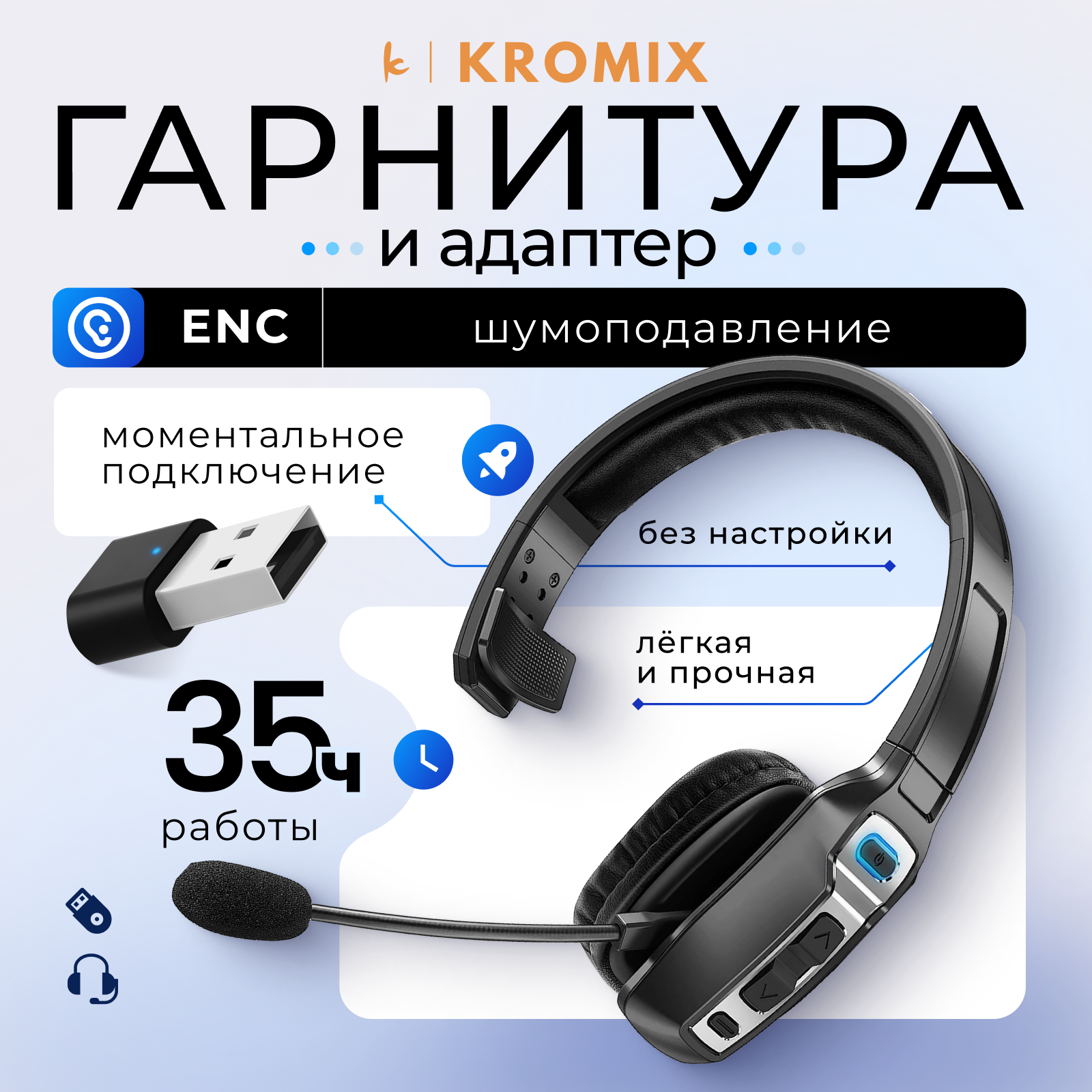 Беспроводная гарнитура для компьютера Kromix K228MBA, с адаптером, с микрофоном, черная: сравнение цен, характеристики, фото, актуальное наличие и цены.