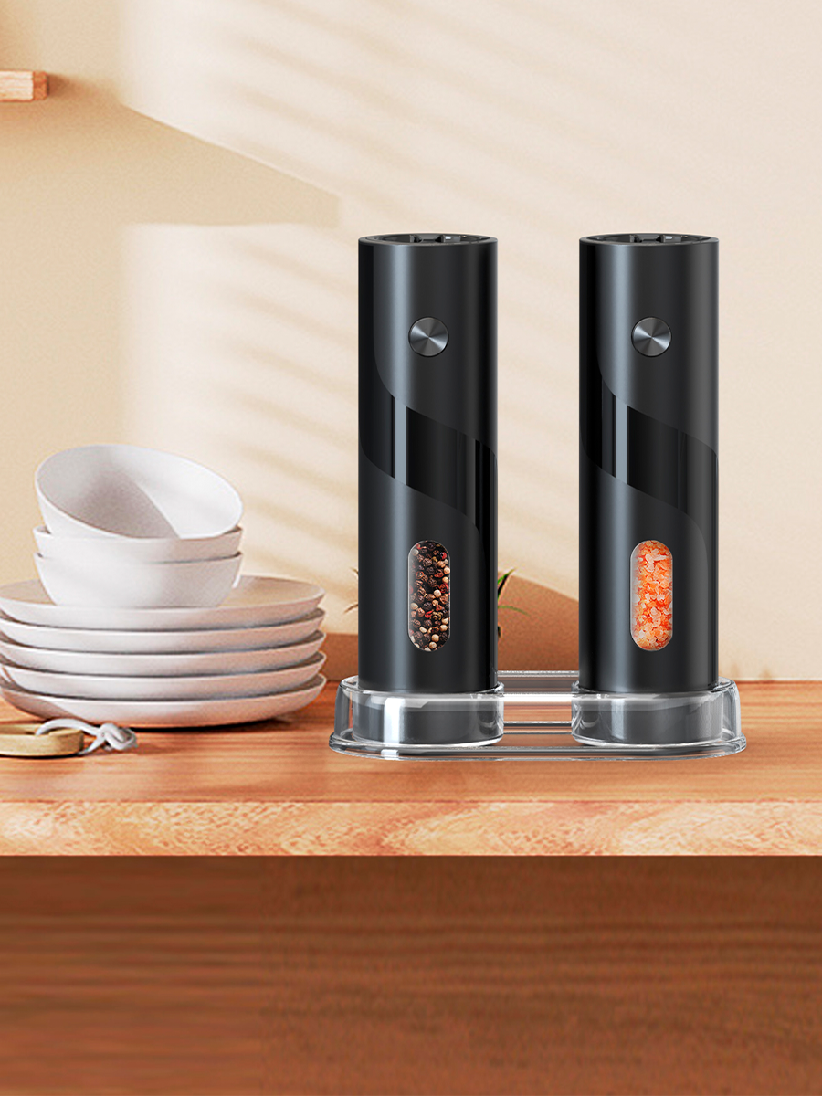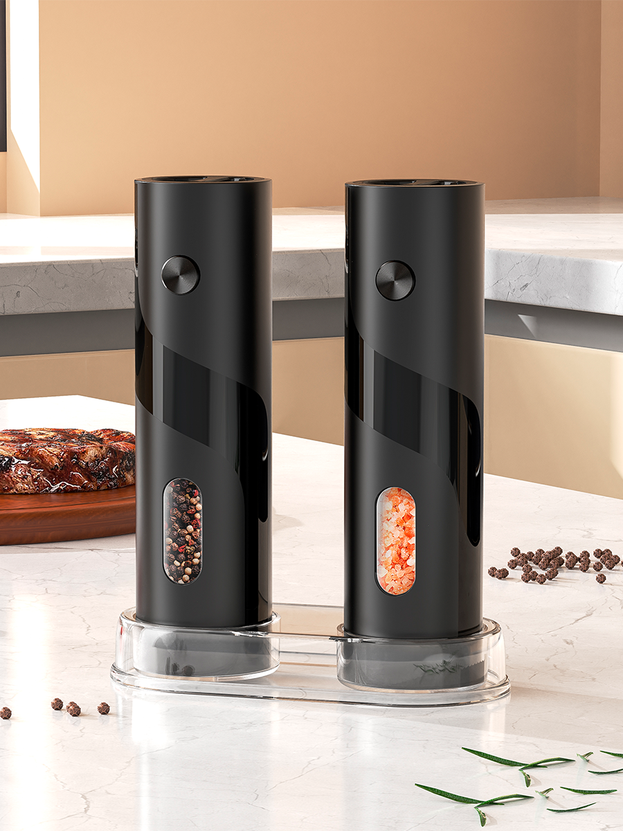 Купить Комплект из двух электрических мельниц и подставки Black Samurai черные (версия на батарейках) с доставкой по всей России.