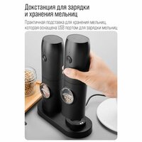 Набор электромельниц для специй начинает помол нажатием на кнопку. В мельницах для специй предусмотрена регулировка тонкости помола - от крупного до самого тонкого. Надежный керамический механизм мельницы с легкостью справляется с помолом. Используя набор , вы получаете максимально насыщенный аромат и вкус специй, который не при хранении, в отличие от готовых молотых приправ. Корпус мельницы выполнен из нержавеющей стали, долговечный и простой в уходе. Стильный универсальный дизайн подойдет для любых интерьеров. В наборе есть коврик, который предотвращает загрязнение рабочей поверхности. Питание: перезарежаемый аккумулятор, заряжаются при установке устройства на докстанцию, либо через порт зарядки на верхней части мельниц. Красивая подарочная упаковка превращает набор мельниц для специй в готовый подарок для ваших родных, близких, друзей и коллег. Перцемолка электрическая подходит для всех видов перца, кристаллов морской соли, приправ и зерна.