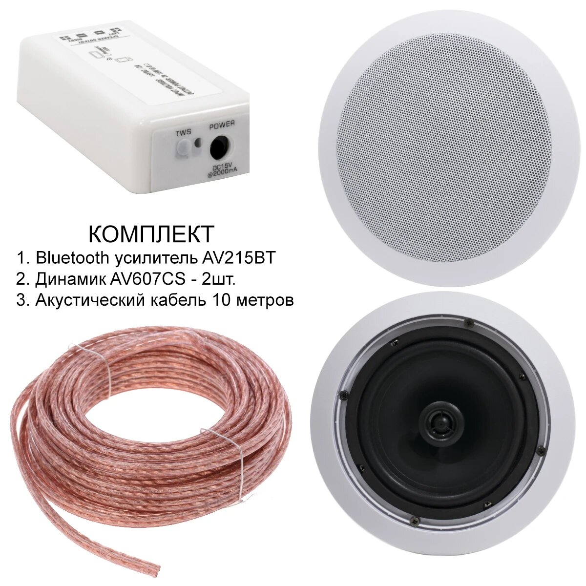 Купить Комплект из двух двухполосных потолочных динамиков, усилителя и акустического кабеля AVEL V215BT + 2xAV607CS + AV10AC с доставкой по всей России.