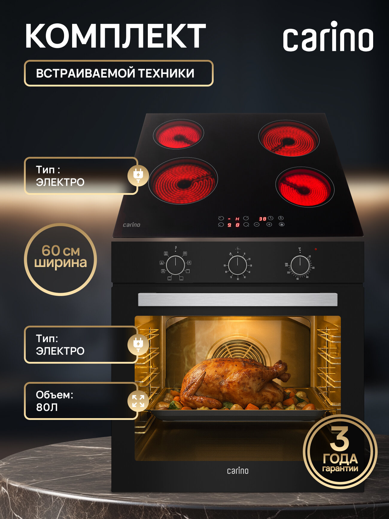 | Подробная комплектация | Комплект из электрического духового шкафа CARINO CB6EB56016 и газовой варочной панели CARINO CH60N40B570 |