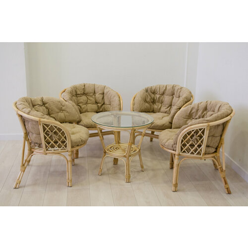 Купить Комплект из натурального ротанга Багама с большими бежевыми подушками Макси Про, цвет натуральный с доставкой по всей России.